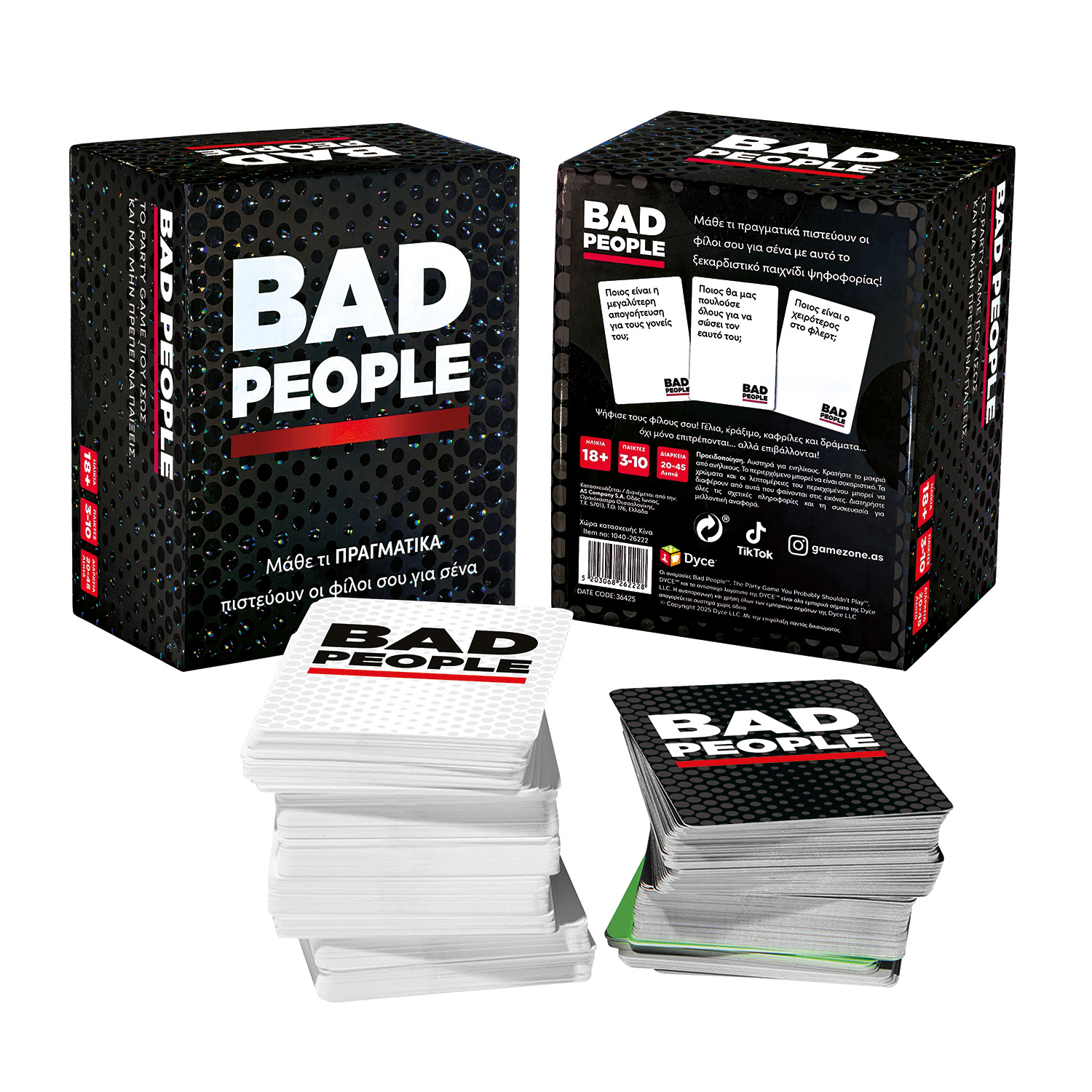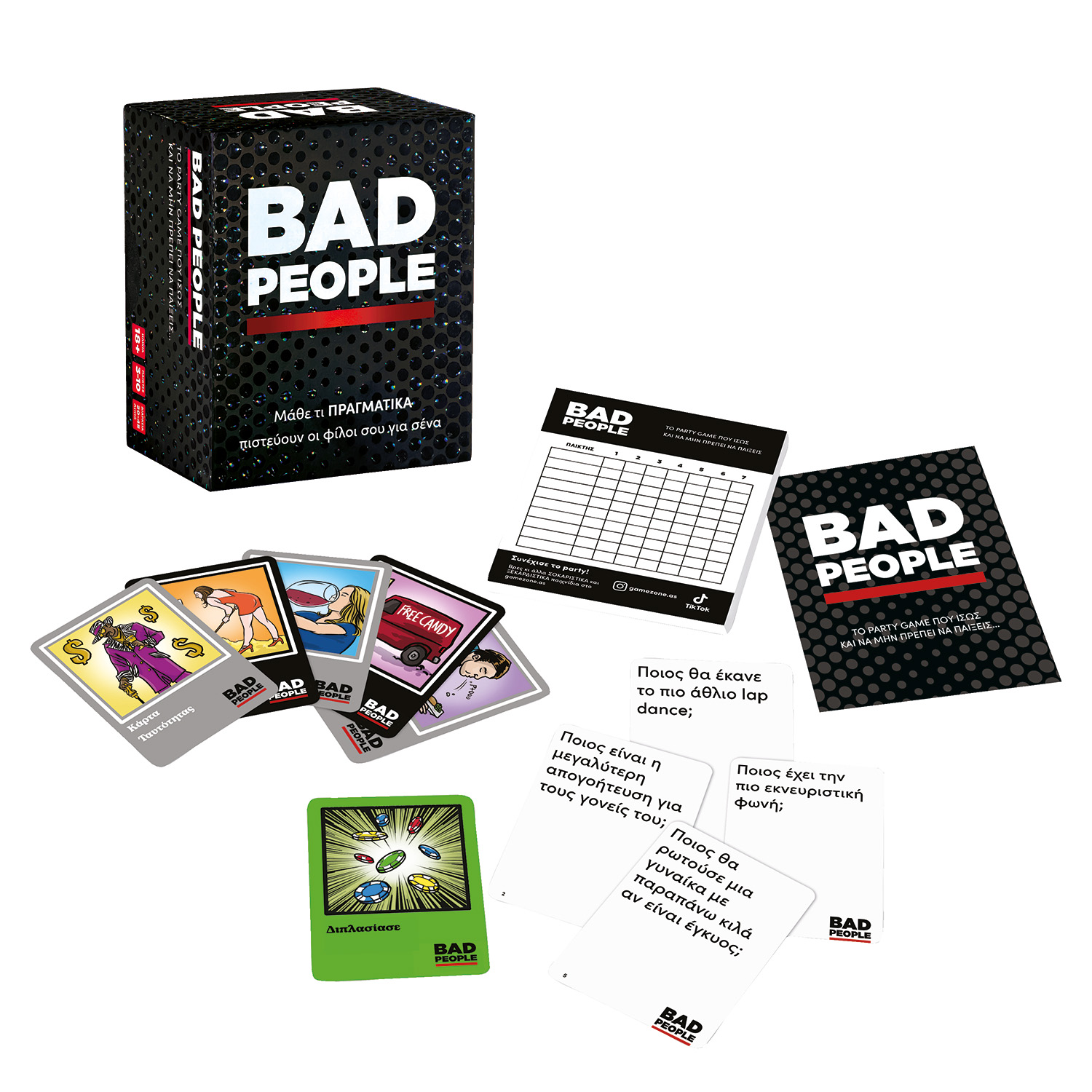 “Το πιο ακραίο party game που φτιάχτηκε ποτέ! Ιδανικό για πάρτι και βραδιές που θα μείνουν αξέχαστες! Ψήφισε τους φίλους σου μέσα από ξεκαρδιστικές και σκληρές ερωτήσεις όπως: «Ποιος είναι πιο πιθανό να συναντήσει πρώην και να μην θυμάται το όνομά του;», «Ποιος πληρώνεται υπερβολικά για αυτά που κάνει;», «Ποιος είναι το λιγότερο πιθανό να γίνει στόχος κλοπής ταυτότητας;» Και τόσες ακόμη next-level ερωτήσεις”