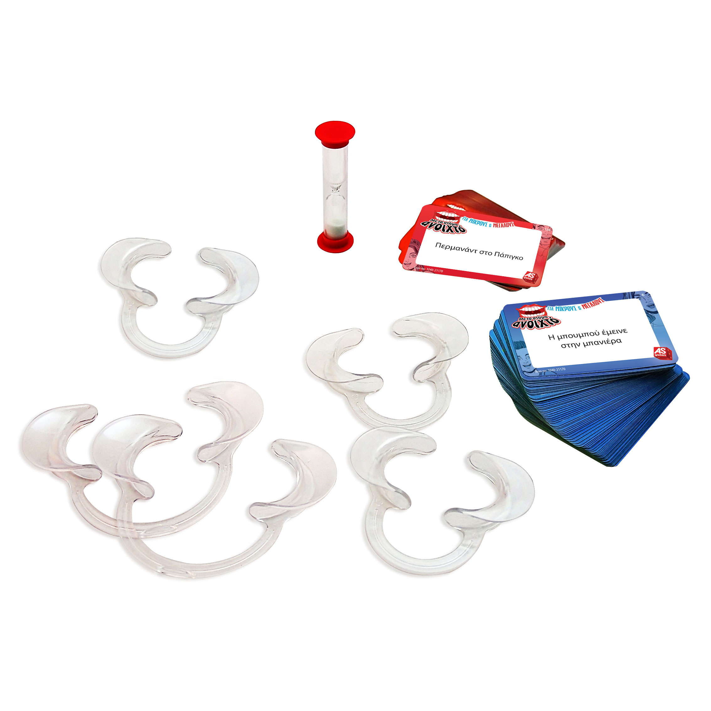 Το παιχνίδι που ενώνει τις οικογένειες, κάνοντας μικρούς και μεγάλους να κλαίνε από τα γέλια! Φόρεσε το ειδικό μασελάκι, τράβηξε μια κάρτα και προσπάθησε να πεις τη φράση που είναι γραμμένη στην κάρτα. Θα καταλάβει η ομάδα σου τη φράση που θέλεις να περιγράψεις; Ο χρόνος μετρά αντίστροφα και όλοι αναρωτιούνται τι λες. Η ομάδα με τις περισσότερες κάρτες στο τέλος του παιχνιδιού κερδίζει! Αριθμός Παικτών: 2-5 Καταλληλότητα Ηλικίας: 8+ Χρονών Μέση Διάρκεια Παιχνιδιού: 20 λεπτά Το παιχνίδι περιλαμβάνει 5 μασελάκια (2 μεγάλα και 3 μικρά) 100 κάρτες με συνολικά 200 φράσεις 1 κλεψύδρα