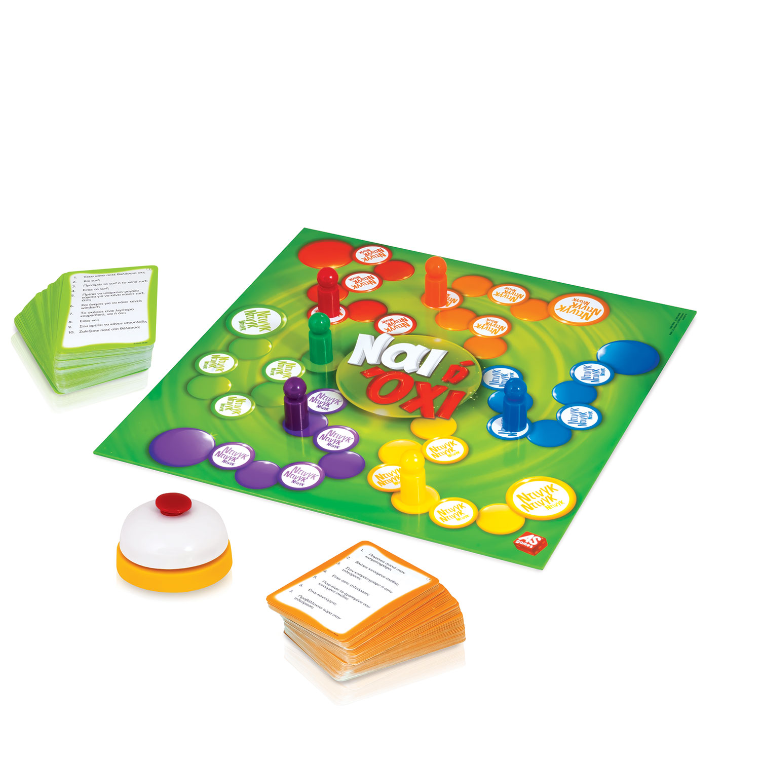 Το παιχνίδι που δε μπορείς να πεις ούτε ΝΑΙ ούτε ΟΧΙ! Μπορείς να απαντήσεις σε μία σειρά απλών ερωτήσεων χωρίς να πεις αυτές τις δύο λέξεις; Χρησιμοποιείστε τη φαντασία σας για να νικήσετε και γελάστε μέχρι δακρύων, με περισσότερες από 900 ερωτήσεις, ειδικά σχεδιασμένες για να παραπλανήσετε τον αντίπαλο! Ο πρώτος παίκτης που θα φτάσει στο κεντρικό πεδίο του ταμπλό κερδίζει! Αριθμός Παικτών: 2-6 Καταλληλότητα Ηλικίας: 7+ Χρονών Μέση Διάρκεια Παιχνιδιού: 30 λεπτά Το παιχνίδι περιλαμβάνει 1 ταμπλό 6 πιόνια 1 κουδούνι 55 κάρτες για μικρούς 55 κάρτες για μικρούς Φυλλάδιο οδηγιών
