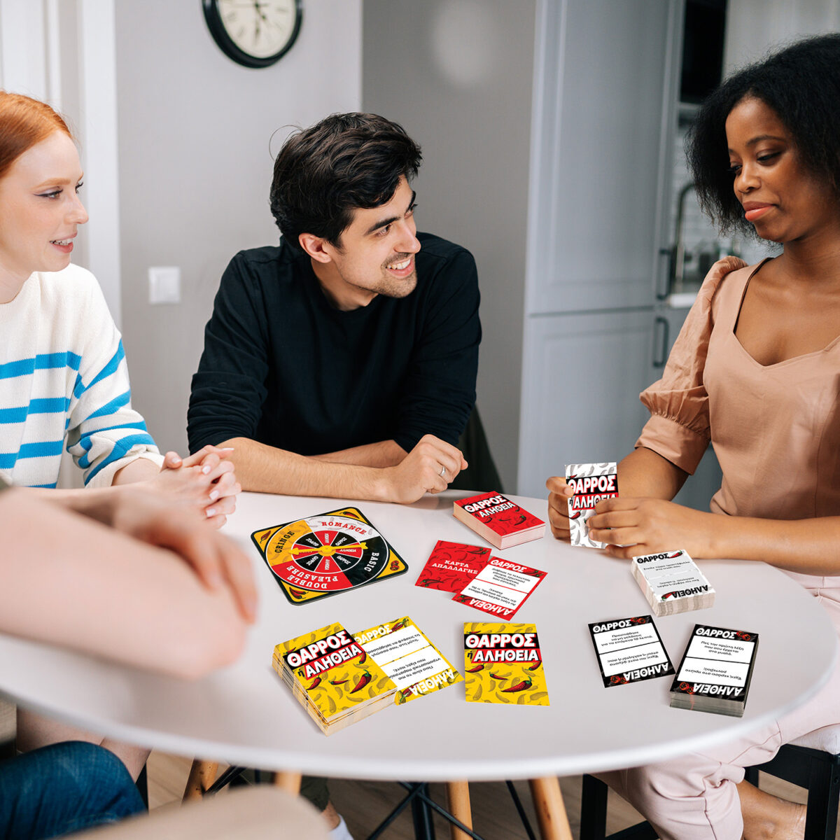 Το πιο διασκεδαστικό παιχνίδι της παρέας! Ετοιμάσου για γέλιο μέχρι τελικής πτώσης, βλέποντας την παρέα σου σε περίεργες και άκρως ξεκαρδιστικές καταστάσεις. Τι μόνο αυτό; Δε θέλεις να μάθεις τις αλήθειες που κρύβουν οι φίλοι σου; Αν ναι, τότε κρατάς στα χέρια σου το κατάλληλο παιχνίδι. Αριθμός Παικτών: 3+ Καταλληλότητα Ηλικίας: 18+ Χρονών Περιεχόμενα – 250 Κάρτες – Τροχός – Κανόνες παιχνιδιού Το προϊόν διαθέτει περιεχόμενο το οποίο απευθύνεται αυστηρά σε ενήλικες.