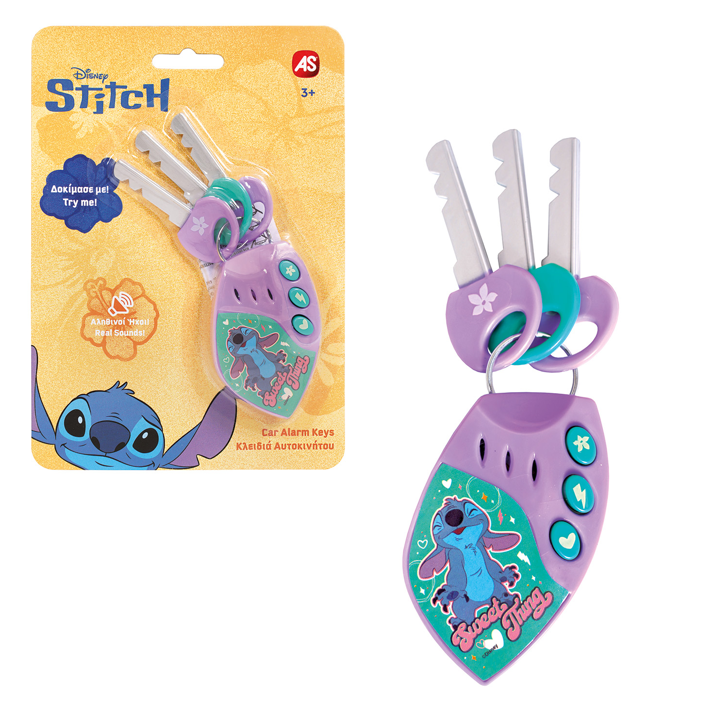 Το AS Κλειδιά και Συναγερμός Αυτοκινήτου Stitch είναι ένα διασκεδαστικό και διαδραστικό παιχνίδι που ενθουσιάζει τα παιδιά, προσφέροντάς τους τη χαρά της μίμησης μέσα από τον αγαπημένο χαρακτήρα Stitch!