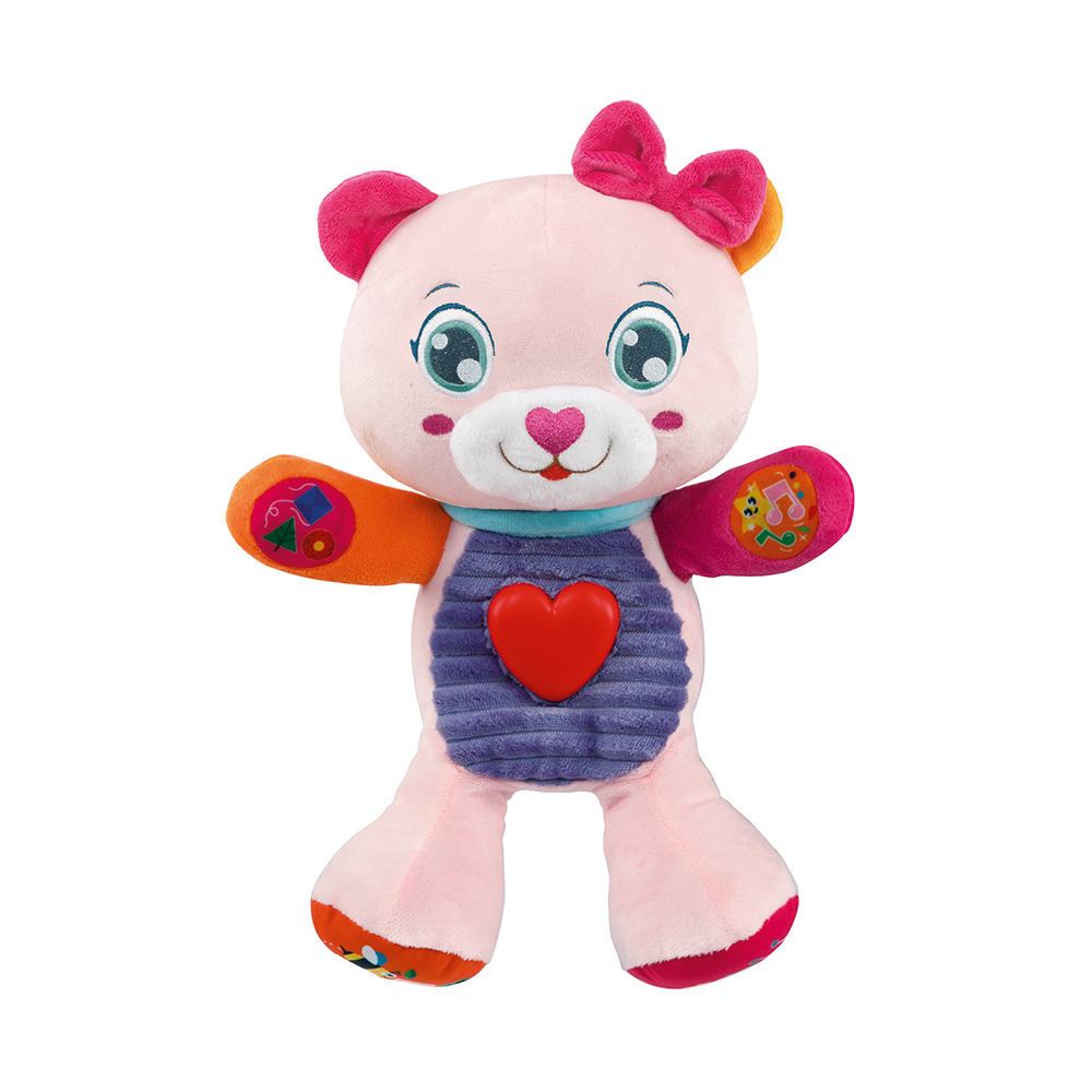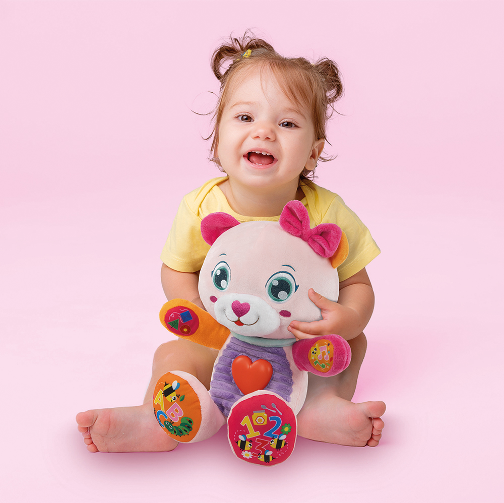 Η Νένα το Αρκουδάκι θα γίνει το καλύτερο φιλαράκι του παιδιού για πολλές αγκαλιές! Μαλακό αρκουδάκι με 5 διαδραστικά κουμπιά για να μάθει το παιδί τους πρώτους αριθμούς, τα πρώτα γράμματα, τα σχήματα και τα χρώματα. Η Νένα το Αρκουδάκι βοηθάει το παιδί να αναγνωρίσει πολλές νέες λέξεις χάρη στα χαρούμενα τραγουδάκια και τα αστεία ποιηματάκια. – 5 διαδραστικά κουμπιά: Μαθαίνει τα πρώτα γράμματα, τους πρώτους αριθμούς, τα σχήματα και τα χρώματα – Οι ιστορίες της Νένα: Πολλά χαρούμενα ποιήματα και τραγουδάκια – Ασφάλεια: Μαλακό, μη τοξικό ύφασμα, για ασφαλείς αγκαλιές! – Εφέ φωτισμού: Με μία μεγάλη διαδραστική καρδιά που φωτίζεται! – Αισθητηριακή ανάπτυξη: Η γλυκιά φωνή της Νένα προσελκύει την προσοχή του παιδιού τονώνοντας την ακουστική του αντίληψη με πολλά τραγουδάκια και αστείους ήχους. Η εικόνα στα κουμπιά, με τα λαμπερά χρώματα των ζώων, προσελκύουν την προσοχή του παιδιού, ενθαρρύνοντας την ανάπτυξη της οπτικής αντίληψης. Η ποικιλία των υφασμάτων και των επιφανειών αφής επιτρέπει στο παιδί να ανακαλύψει τις διαφορετικές αισθήσεις αφής – Ψυχοκινητική ανάπτυξη: Τα πολλά διαδραστικά κουμπιά βοηθούν το παιδί να ανακαλύψει τη σχέση μεταξύ αιτίας-αποτελέσματος, ενθαρρύνοντας το να κάνει όλο και πιο ελεγχόμενες και συνειδητές κινήσεις και να αναπτύξει το συντονισμό ματιών-χεριών – Γνωστική ανάπτυξη: Ένα παιχνιδιάρικο και χαρούμενο ερέθισμα για να αναπτύξει τη γλώσσα μέσα από τραγούδια και ποιηματάκια – Συναισθηματική ανάπτυξη: Η Νένα εμπλέκει το παιδί ενθαρρύνοντάς το να παίξει μαζί του, να πατήσει ένα κουμπί ή να την αγκαλιάσει Τα παιχνίδια της σειράς Baby Clementoni βοηθούν τους γονείς να επικοινωνούν και να αλληλεπιδρούν με το μωρό από τις πρώτες ημέρες της ζωής του. Με καινοτόμο σχεδιασμό και χρώματα, μη τοξικά και ανθεκτικά υλικά, καθώς και με ανάγλυφες επιφάνειες και πολλές δραστηριότητες ευνοούν την ανάπτυξη των οπτικών, απτικών και ακουστικών ικανοτήτων, την κινητική δραστηριότητα και τους πρώτους λογικούς συσχετισμούς.