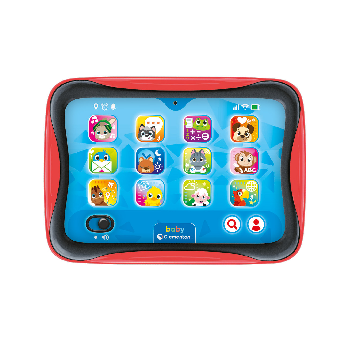 Ένα διαδραστικό tablet με ποικιλία “εφαρμογών” διεγείρει την πολυαισθητηριακή ανάπτυξη χάρη στις μελωδίες, τα ηχητικά εφέ και ένα ωραίο τραγουδάκι. Ο σχεδιασμός του προϊόντος προάγει τον συντονισμό και εκπαιδεύει στις λεπτές κινητικές δεξιότητες . – 12 διαφορετικά πλήκτρα αφής- “εφαρμογές” – Τα εικονίδια των εφαρμογών είναι ζωάκια – Σε κάθε ζωάκι αντιστοιχεί διαφορετική εκφώνηση λειτουργίας Χαρακτηριστικά : – Με διαδραστικά πλήκτρα αφής για εκμάθηση σε συνδυασμό με διασκέδαση – Ξεκάθαρος, Δυναμικός σχεδιασμός – Ρεαλιστική επιφάνεια εργασίας Τα παιχνίδια της σειράς Baby Clementoni βοηθούν τους γονείς να επικοινωνούν και να αλληλεπιδρούν με το μωρό από τις πρώτες ημέρες της ζωής του. Με καινοτόμο σχεδιασμό και χρώματα, μη τοξικά και ανθεκτικά υλικά, καθώς και με ανάγλυφες επιφάνειες και πολλές δραστηριότητες ευνοούν την ανάπτυξη των οπτικών, απτικών και ακουστικών ικανοτήτων, την κινητική δραστηριότητα και τους πρώτους λογικούς συσχετισμούς.