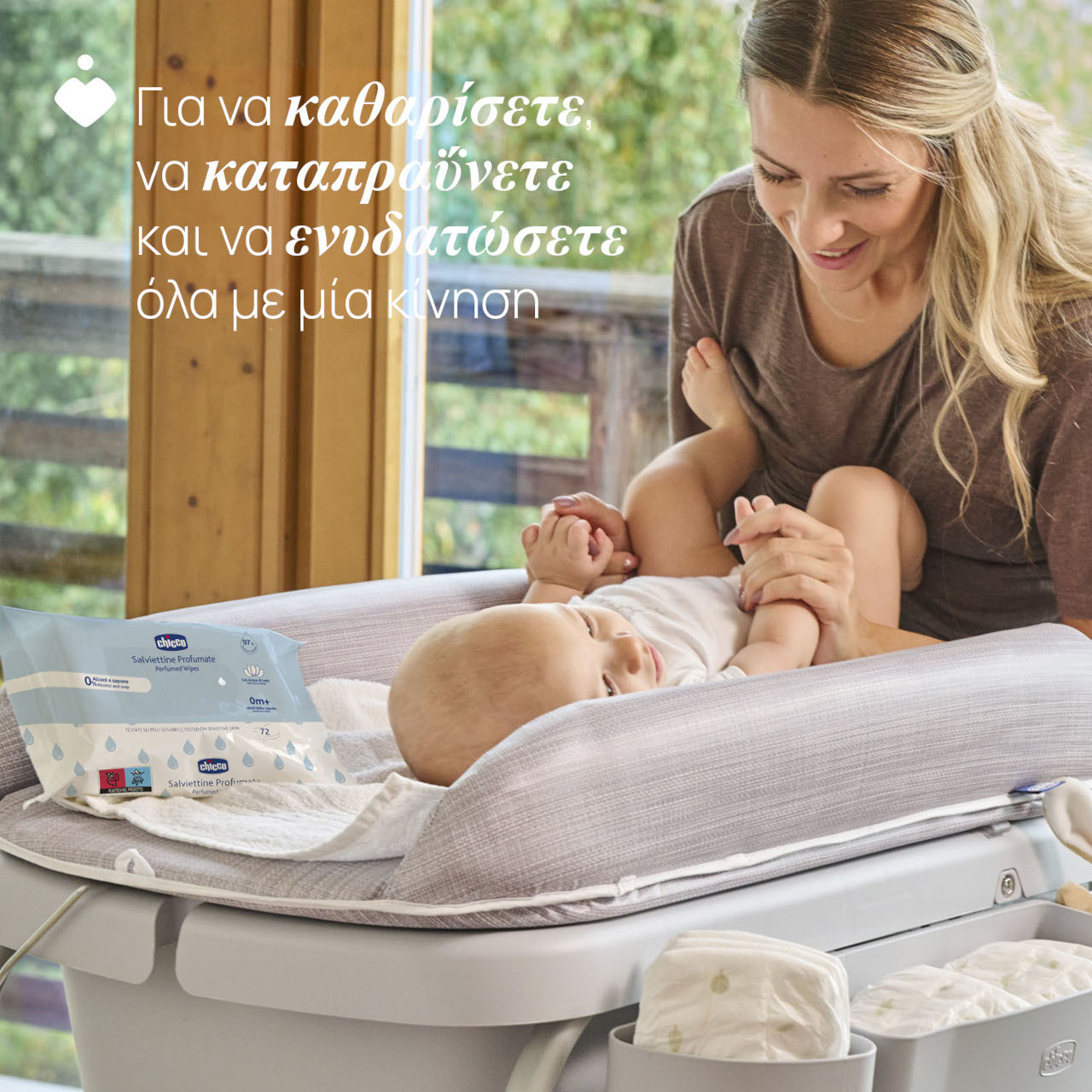 Chicco Μωρομάντηλα Με 97% Νερό Χωρίς Καπάκι 72τμχ Αυτά τα μαντηλάκια είναι αρωματισμένα και δεν περιέχουν ούτε οινόπνευμα ούτε σαπούνι. Είναι δανικά για απαλό καθαρισμό της παιδικής επιδερμίδας. Κατασκευασμένα από μαλακό ύφασμα, ιδανικό για τον καθαρισμό, την καταπράυνση και την ενυδάτωση των χεριών, του προσώπου και του σώματος. – Με 97% νερό και εμπλουτισμένα με Νερό Λωτού. – Προϊόν δερματολογικά ελεγμένο σε ευαίσθητες επιδερμίδες – Ιδανικό για χρήση από τη γέννηση