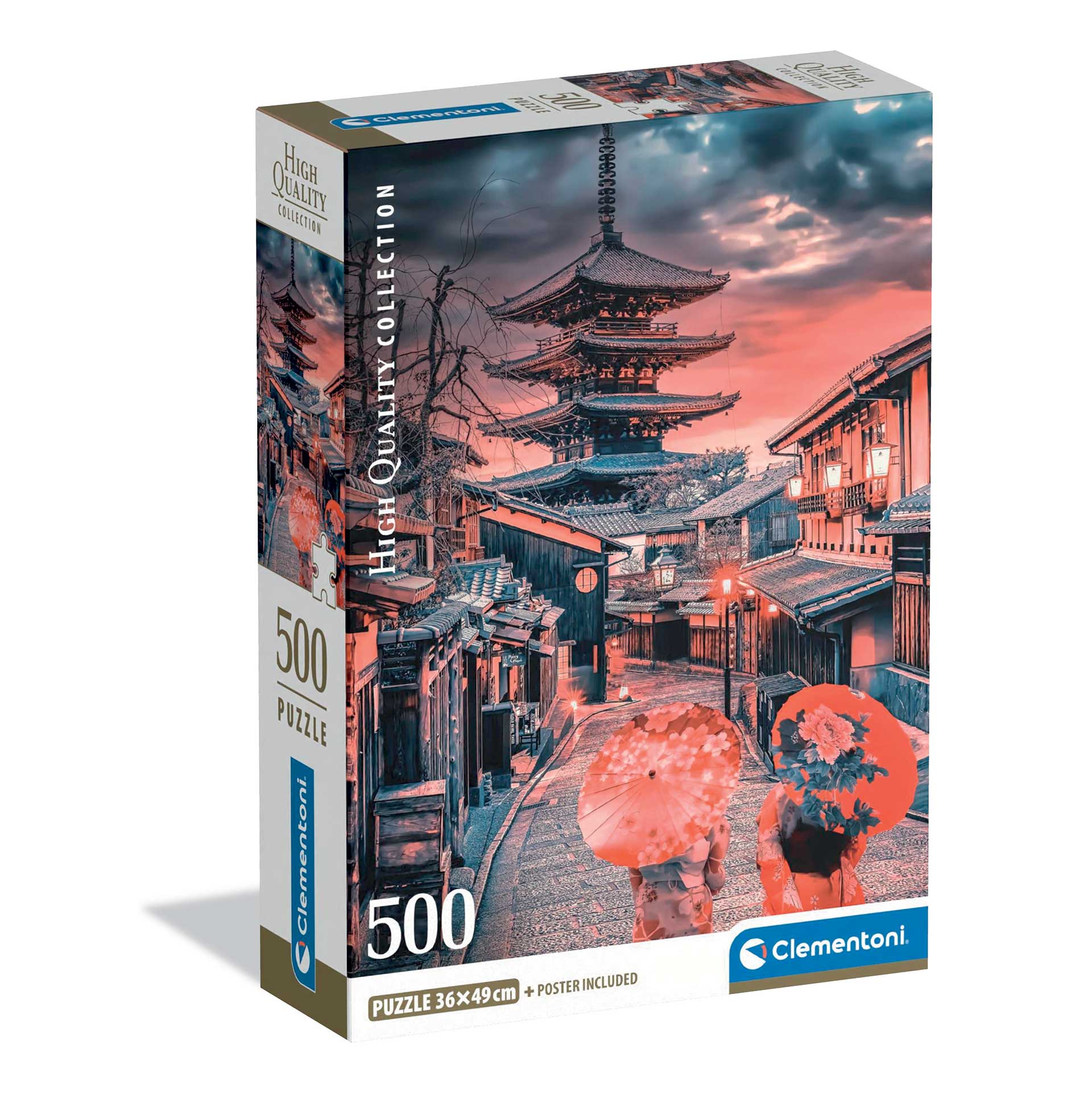 “Clementoni Παζλ 500 τεμαχίων της σειράς High Quality Collection με θέμα Απόγευμα Στο Κιότο. Οι πιο ελκυστικές εικόνες, η μεγαλύτερη ποικιλία μεγεθών και η χαρακτηριστική ποιότητα Clementoni για τη σειρά High Quality Collection, που αποτελεί χρυσό πρότυπο για τους λάτρεις των παζλ παντού. Συντονισμένα με τη σημασία της περιβαλλοντικής ευαισθητοποίησης, τα παζλ Clementoni φτιάχνονται με εκτεταμένη χρήση ανακυκλωμένων υλικών, αποφεύγοντας παράλληλα τη χρήση από τυχόν συστατικά που περιέχουν ρύπους. – Τεμάχια Παζλ: 500 – Σειρά: High Quality Collection – Διαστάσεις Ολοκληρωμένου Παζλ: 49x36cm – Κατασκευάζεται στην Ιταλία – Τυπωμένο σε αντιθαμβωτικό χαρτί – Κομμάτια από χοντρό ανθεκτικό χαρτόνι – Περιλαμβάνεται Poster”