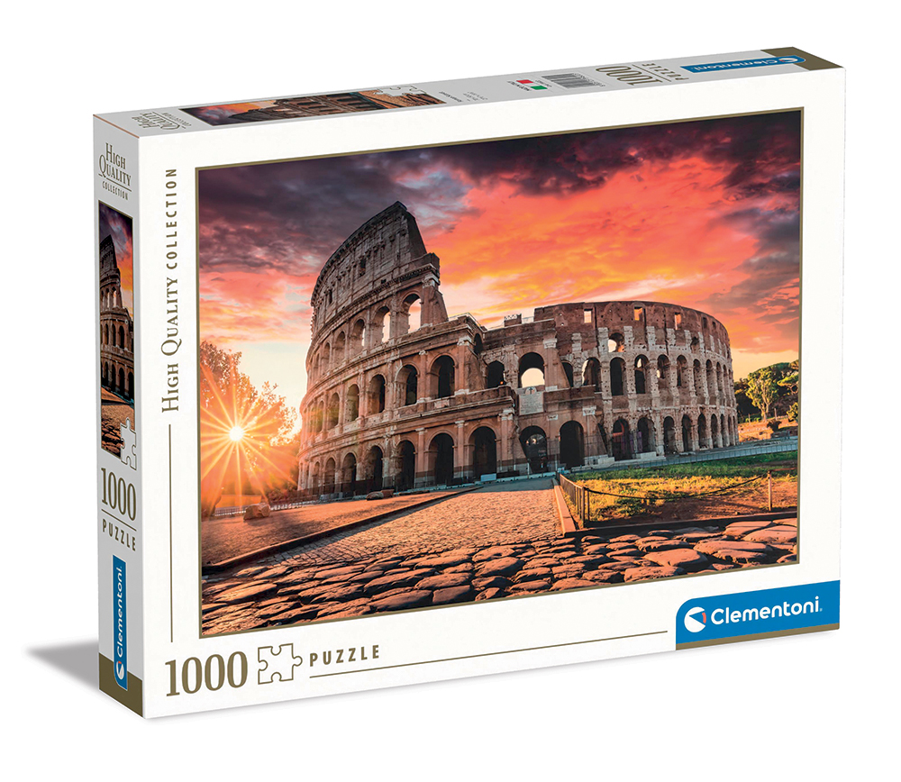 Clementoni Παζλ 1000 τεμαχίων της σειράς High Quality Collection με θέμα Ηλιοβασίλεμα στο Κολοσσαίο. Οι πιο ελκυστικές εικόνες, η μεγαλύτερη ποικιλία μεγεθών και η χαρακτηριστική ποιότητα Clementoni για τη σειρά High Quality Collection, που αποτελεί χρυσό πρότυπο για τους λάτρεις των παζλ παντού. Συντονισμένα με τη σημασία της περιβαλλοντικής ευαισθητοποίησης, τα παζλ Clementoni φτιάχνονται με εκτεταμένη χρήση ανακυκλωμένων υλικών, αποφεύγοντας παράλληλα τη χρήση από τυχόν συστατικά που περιέχουν ρύπους. – Τεμάχια Παζλ: 1000 – Σειρά: High Quality Collection – Διαστάσεις Ολοκληρωμένου Παζλ: 70x50cm – Κατασκευάζεται στην Ιταλία – Τυπωμένο σε αντιθαμβωτικό χαρτί – Κομμάτια από χοντρό ανθεκτικό χαρτόνι