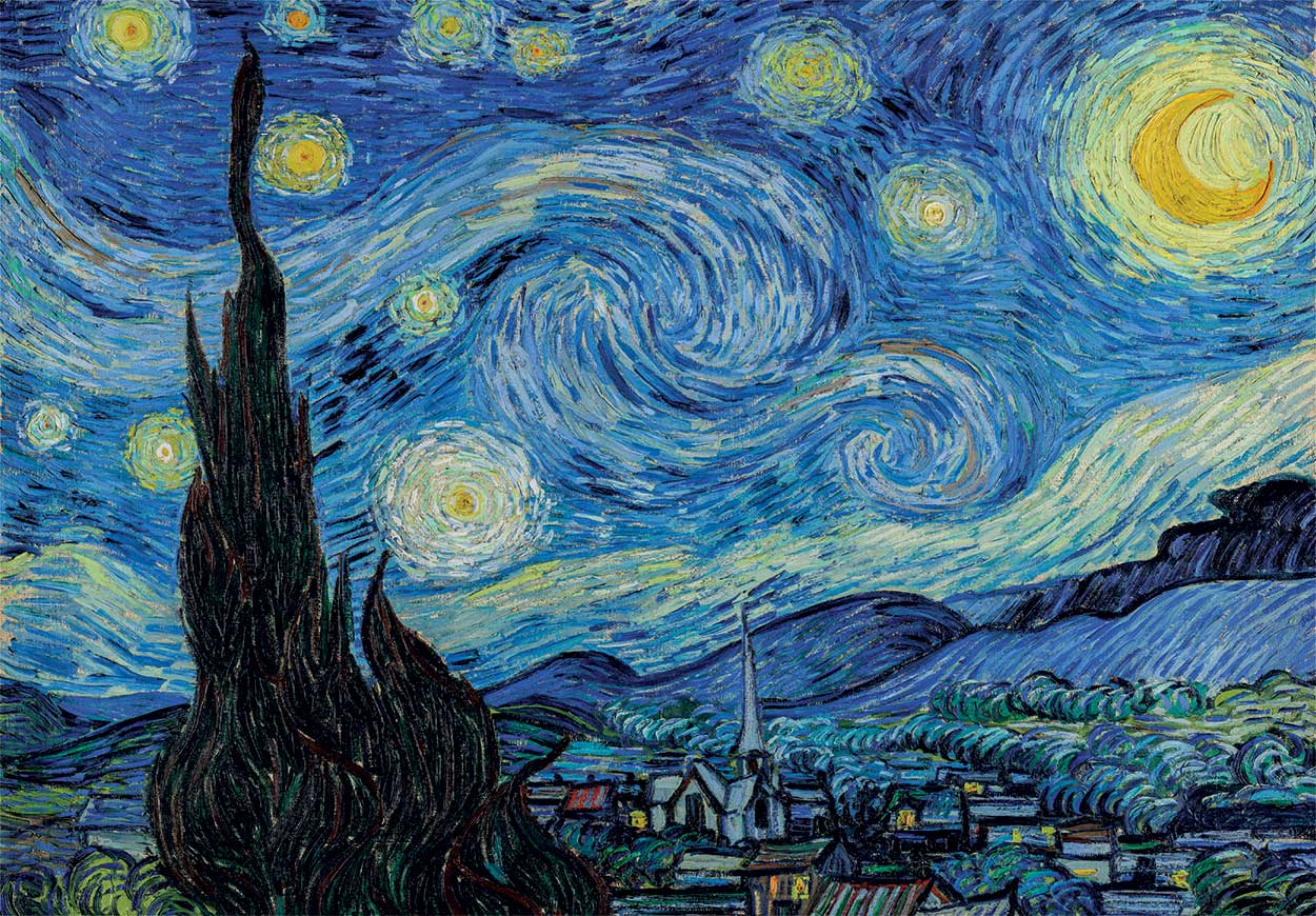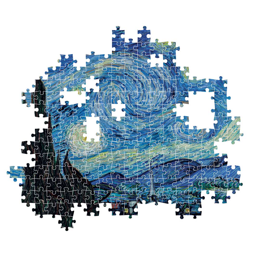 Clementoni Παζλ 1000 τεμαχίων της σειράς Museum με θέμα Van Gogh: Έναστρη Νύχτα. Η σειρά παζλ Museum της Clementoni είναι αφιερωμένη στα κορυφαία μουσεία και τα σπουδαιότερα έργα τέχνης στην ιστορία. Συντονισμένα με τη σημασία της περιβαλλοντικής ευαισθητοποίησης, τα παζλ Clementoni φτιάχνονται με εκτεταμένη χρήση ανακυκλωμένων υλικών, αποφεύγοντας παράλληλα τη χρήση από τυχόν συστατικά που περιέχουν ρύπους. Τεμάχια Παζλ: 1000 Σειρά: Museum Collection Διαστάσεις Ολοκληρωμένου Παζλ: 70x50cm Κατασκευάζεται στην Ιταλία Τυπωμένο σε αντιθαμβωτικό χαρτί Κομμάτια από χοντρό ανθεκτικό χαρτόνι Περιλαμβάνεται Poster