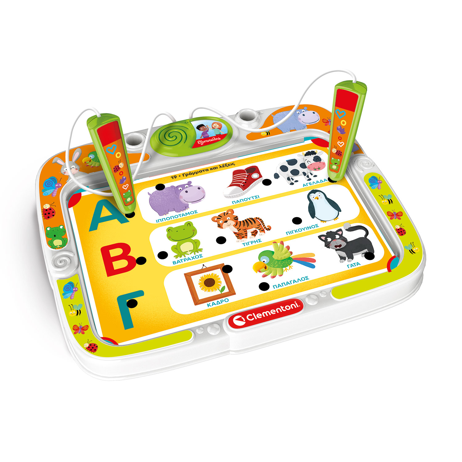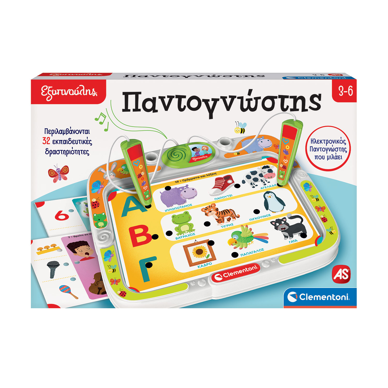 Ηλεκτρονικός Παντογνώστης που μιλάει με 2 διαδραστικές πένες! Περιλαμβάνει 32 εκπαιδευτικές δραστηριότητες και πάνω από 200 κουίζ γύρω από ποικίλα θέματα! Μέσα από το παιχνίδι, το παιδί θα συναντήσει χαριτωμένους χαρακτήρες, αγαπημένα ζώα και οικεία αντικείμενα και θα αρχίσει να αναγνωρίζει χρώματα, σχήματα, γράμματα και πολλά περισσότερα! Οι πένες βγάζουν ευχάριστα μηνύματα και ηχητικά εφέ όταν το παιδί διαλέγει τη σωστή απάντηση και το ενθαρρύνουν να προσπαθήσει ξανά σε περίπτωση λάθους. Οι δραστηριότητες χωρίζονται σε 3 επίπεδα, καλύπτουν συνήθη θέματα της προσχολικής εκπαίδευσης και είναι ανάλογες της ηλικίας του παιδιού και των διαφόρων σταδίων της γνωστικής ανάπτυξης. Ξεκινούν από την ηλικία των 3 στο Βασικό Επίπεδο και φτάνουν μέχρι την ηλικία των 6 στο Προχωρημένο Επίπεδο. Παίξτε με το παιδί σας και συνοδέψτε το σε ένα πολύχρωμο ταξίδι γεμάτο διασκέδαση και παιχνίδι. Το παιχνίδι αυτό βοηθά το παιδί να αναπτύξει και να αποκτήσει: – Κινητικές ικανότητες μέσω της εξάσκησης των χεριών και της χρήσης των εργαλείων παιχνιδιού – Λογική και παρατηρητικότητα μέσω της αναγνώρισης, συσχέτισης και ταξινόμησης αντικειμένων με βάση ορισμένα κριτήρια – Γνώσεις για την κατανόηση του κόσμου όπως τα ζώα, το περιβάλλον, ο κόσμος των ενηλίκων και τα εργαλεία – Ανάγνωση και γραφή μαθαίνοντας την αλφαβήτα και την κατανόηση κειμένων και εικόνων – Κατανόηση ποσοτήτων και αριθμών – Αυτονομία – Μνήμη – Δημιουργικότητα και φαντασία Η συσκευασία περιλαμβάνει: – 16 κάρτες με 32 εκπαιδευτικές δραστηριότητες – 1 ηλεκτρονική μονάδα που μιλάει με 2 πένες – 1 εγχειρίδιο χρήσης Κατασκευάζεται στην Ιταλία Τα εκπαιδευτικά παιχνίδια του Εξυπνούλη αποτελούν μια διαχρονική και πρωτοποριακή σειρά, σχεδιασμένη για την υποστήριξη της μαθησιακής ανάπτυξης των παιδιών κατά την προσχολική και σχολική ηλικία. Έχουν μελετηθεί από ειδικούς παιδαγωγούς και ψυχολόγους και έχουν δοκιμαστεί σε σχολεία. Καλύπτουν πλήθος εκπαιδευτικών θεμάτων βοηθώντας τα παιδιά να αναπτύξουν ουσιαστικές ικανότητες και γνώσεις με απλό και διασκεδαστικό τρόπο!