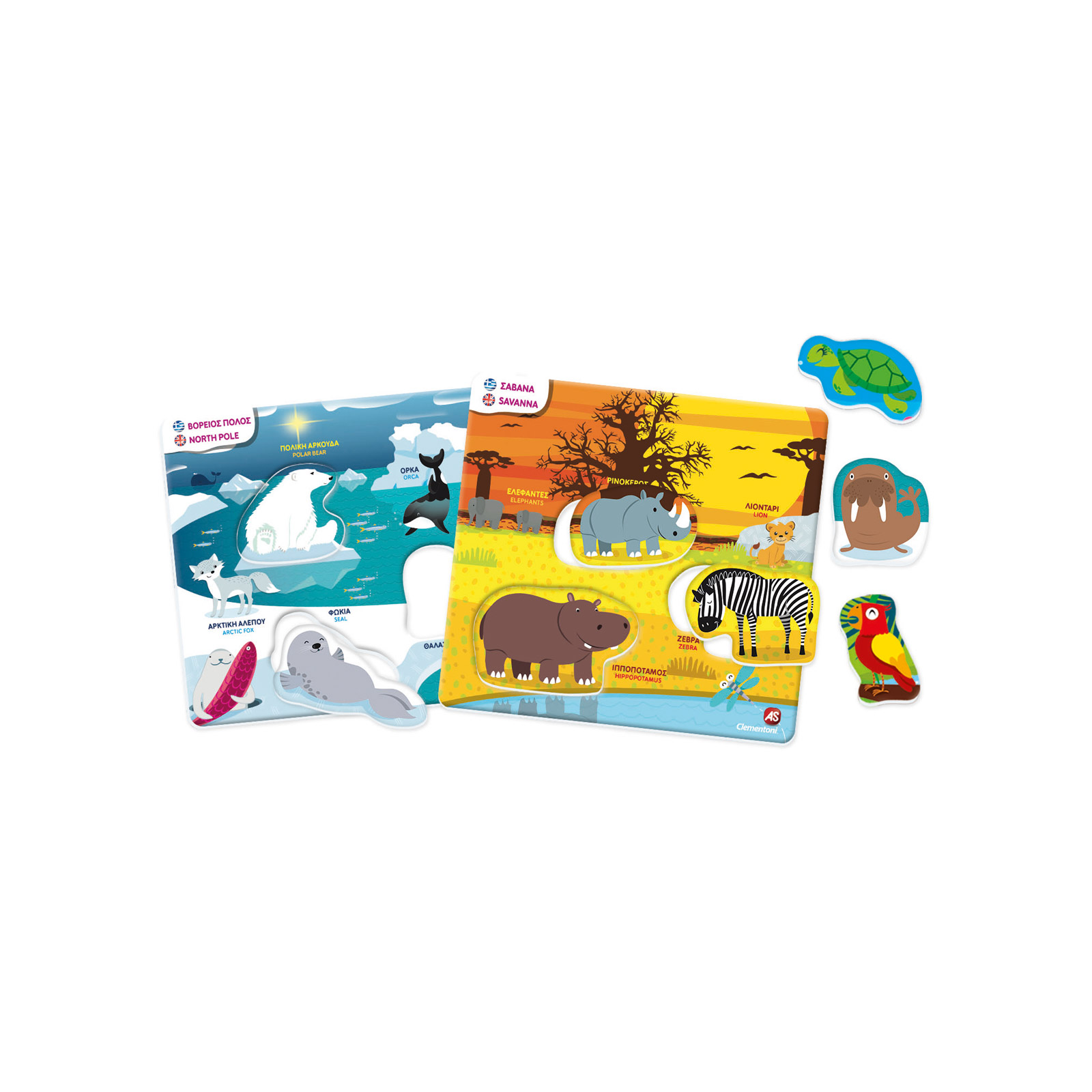 Το Πού ζουν τα ζώα είναι ένα διασκεδαστικό εκπαιδευτικό παιχνίδι, ειδικά σχεδιασμένο για παιδιά ηλικίας 3 ετών και άνω. Περιέχει πολύχρωμες εικονογραφημένες κάρτες σε δύο γλώσσες. Τα παιδιά μαθαίνουν με εύκολο και διασκεδαστικό τρόπο, τις ονομασίες των ζώων και το περιβάλλον στο οποίο ζουν! Μέσα από χαρούμενες εικόνες τα παιδιά θα ανακαλύψουν: το Δάσος, τη Σαβάνα, το Βόρειο Πόλο και τη Φάρμα. Ακόμη, θα ανακαλύψουν τα ζωάκια που συναντάμε σε καθένα από αυτά και τις συνθήκες μέσα στις οποίες επιβιώνουν. Το παιχνίδι διαθέτει μέθοδο αυτοδιόρθωσης που επιτρέπει στο παιδί να ελέγξει μόνο του αν έδωσε τη σωστή απάντηση, χωρίς τη βοήθεια ενήλικα. Το παιχνίδι αυτό βοηθά το παιδί να αναπτύξει και να αποκτήσει: – Γνώσεις για την κατανόηση του κόσμου – Γνώσεις για τα ζώα και το περιβάλλον τους – Λογική και Παρατηρητικότητα – Αναγνώριση, συσχέτιση και ταξινόμηση εικόνων, γραμμάτων, λέξεων – Ανάγνωση και Γραφή – Κατανόηση κειμένου και εικόνων – Ξένη Γλώσσα – Εισαγωγή στην κατανόηση και τη χρήση της αγγλικής γλώσσας – Αυτονομία – Ανάπτυξη πρωτοβουλίας και ικανότητα λήψης αποφάσεων – Κοινωνικότητα – Ακρόαση – Συνεργασία και ομαδική δουλειά – Σεβασμός στους κανόνες παιχνιδιού – Διαχείριση συναισθημάτων – Κινητικές Ικανότητες – Εξάσκηση χεριών και κινητικών ικανοτήτων – Μνήμη – Δημιουργικότητα και φαντασία Κατασκευάζεται στην Ιταλία Τα εκπαιδευτικά παιχνίδια του Εξυπνούλη αποτελούν μια διαχρονική και πρωτοποριακή σειρά, σχεδιασμένη για την υποστήριξη της μαθησιακής ανάπτυξης των παιδιών κατά την προσχολική και σχολική ηλικία. Έχουν μελετηθεί από ειδικούς παιδαγωγούς και ψυχολόγους και έχουν δοκιμαστεί σε σχολεία. Καλύπτουν πλήθος εκπαιδευτικών θεμάτων βοηθώντας τα παιδιά να αναπτύξουν ουσιαστικές ικανότητες και γνώσεις με απλό και διασκεδαστικό τρόπο!