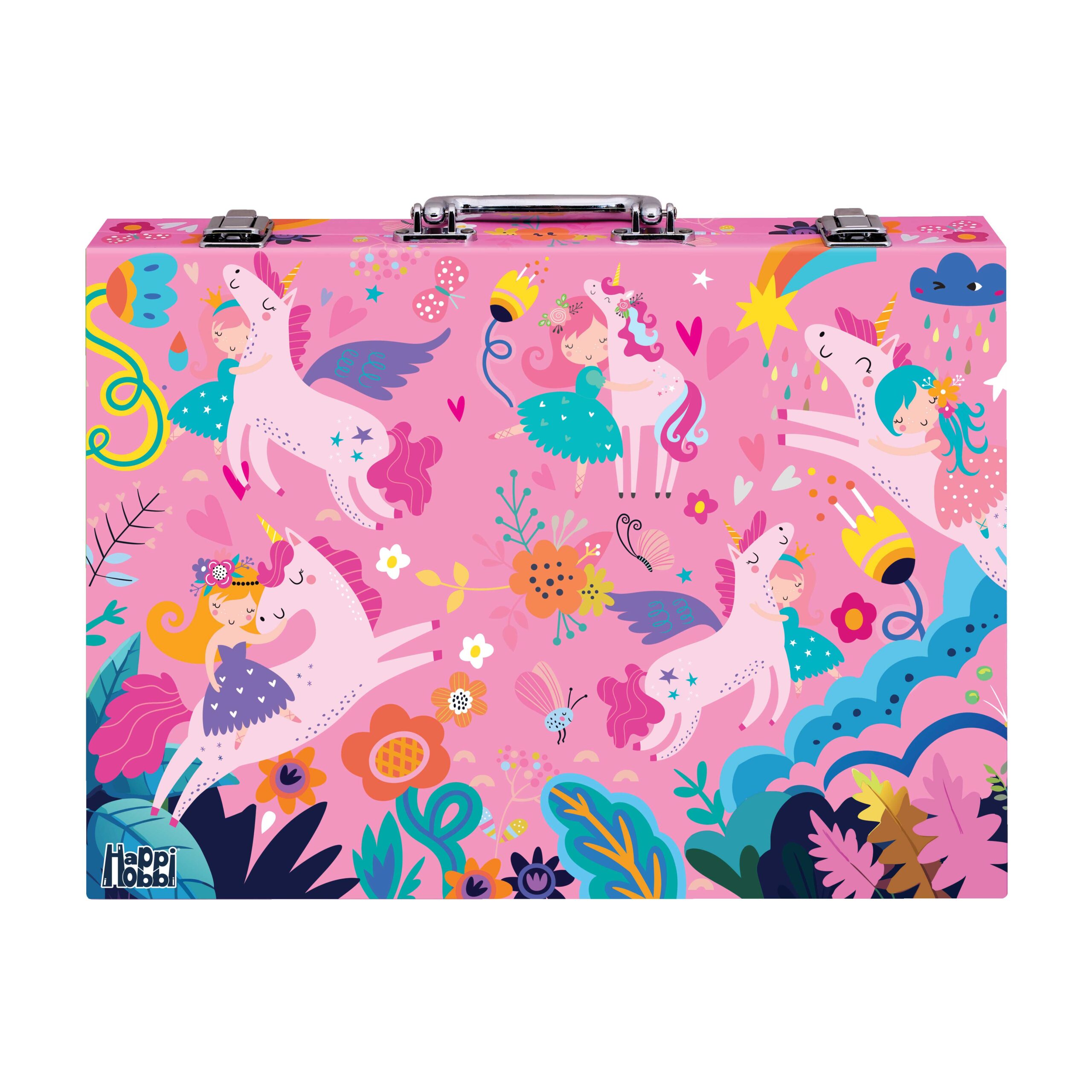 Όσα χρώματα κι αν έχεις δεν είναι ποτέ αρκετά για τη ζωγραφική σου! Στην κασετίνα HappiHobbi Deluxe Φαντασία Μονόκερος θα βρεις 100 αξεσουάρ για να ζωγραφίσεις τα αγαπημένα σου σχέδια και να μυηθείς σε διάφορες τεχνικές. Και όλα αυτά σε μία θήκη με χερούλι που μπορείς να την παίρνεις παντού μαζί σου! Περιλαμβάνει – 14 pastel χρώματα – 18 κηρομπογιές – 16 πλενόμενους μαρκαδόρους – 18 ξυλομπογιές – 16 νερομπογιές – 12 Α4 φύλλα ζωγραφικής – 2 μολύβια σχεδίου – 2 πινέλα – 1 σβήστρα – 1 ξύστρα