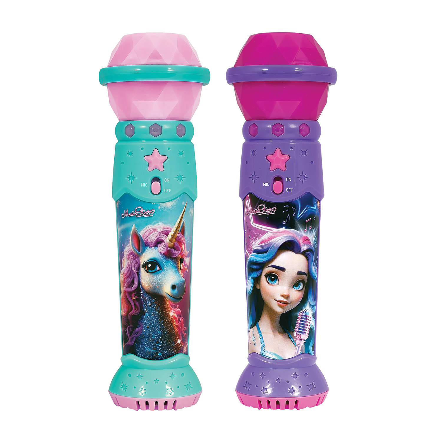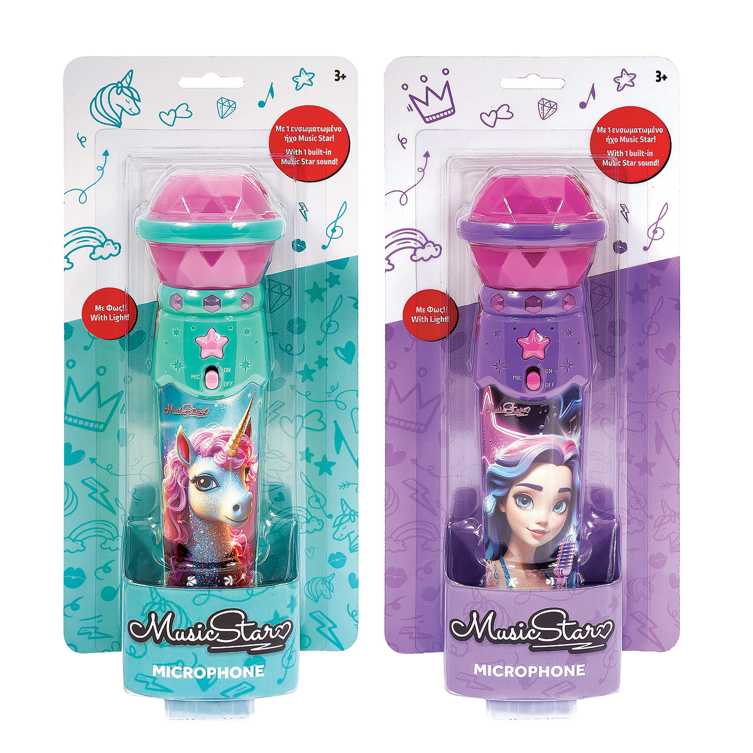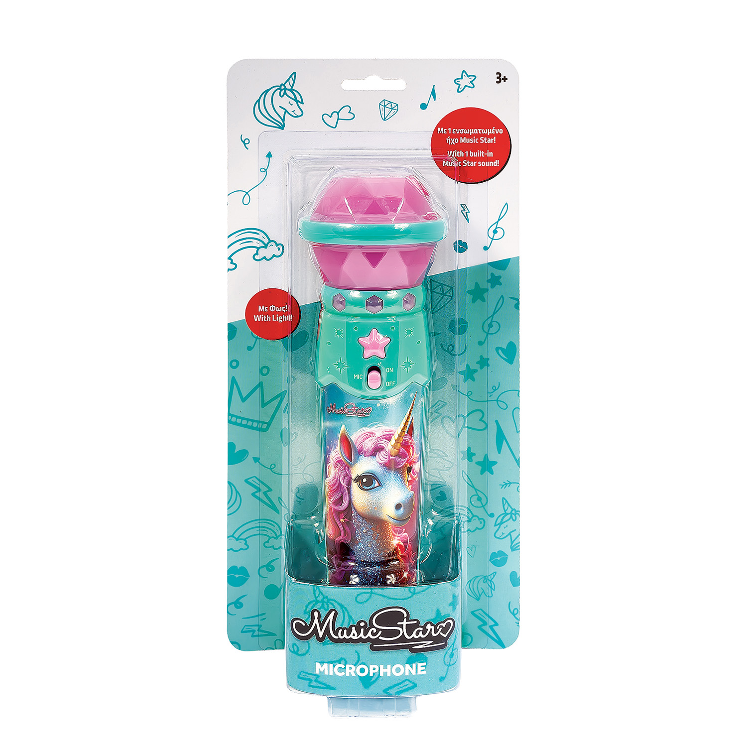 Γίνε η απόλυτη σταρ με το εντυπωσιακό μικρόφωνο Music Star! Με φωτεινά εφέ και ενσωματωμένο ήχο, το παιχνίδι γίνεται ακόμα πιο διασκεδαστικό, δίνοντας σε κάθε παιδί τη χαρά να τραγουδήσει και να λάμψει στη σκηνή. Διατίθεται σε 2 σχέδια με εντυπωσιακές παραστάσεις μονόκερου ή τραγουδίστριας, για να διαλέξει κάθε παιδί το αγαπημένο του στυλ. – Με ενσωματωμένο ήχο “Music Star” – Με φως για ακόμα πιο εντυπωσιακή εμφάνιση – Ιδανικό για παιχνίδι ρόλων και καλλιτεχνική έκφραση