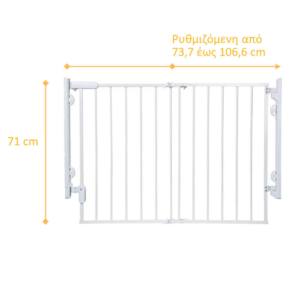 Η Πόρτα Ασφαλείας Ready to Install της Safety 1st σε λευκό χρώμα είναι η ιδανική επιλογή για την ασφαλή προστασία του παιδιού σας σε διάφορους χώρους του σπιτιού. Χαρακτηριστικά: – Ρυθμιζόμενο Πλάτος: Η πόρτα διαθέτει πλάτος που ρυθμίζεται από 73,7 cm έως 106,6 cm, επιτρέποντας την προσαρμογή σε διάφορα ανοίγματα. – Σταθερό Ύψος: Με σταθερό ύψος 71 cm, προσφέρει αξιόπιστη προστασία χωρίς να περιορίζει την ορατότητα. – Αμφιδέξιο Άνοιγμα: Η πόρτα ανοίγει και προς τις δύο κατευθύνσεις, διευκολύνοντας τη χρήση σε πολυσύχναστους χώρους. – Εύκολη Εγκατάσταση: Έτοιμη για τοποθέτηση χωρίς την ανάγκη μετρήσεων, ιδανική για χρήση στο πάνω μέρος της σκάλας. – Ασφαλής Κατασκευή: Κατασκευασμένη από ανθεκτικά υλικά, εξασφαλίζει μακροχρόνια χρήση και αξιοπιστία. Με την Πόρτα Ασφαλείας Ready to Install, μπορείτε να διατηρήσετε το παιδί σας ασφαλές, ενώ ταυτόχρονα απολαμβάνετε ευκολία και λειτουργικότητα στον χώρο σας.