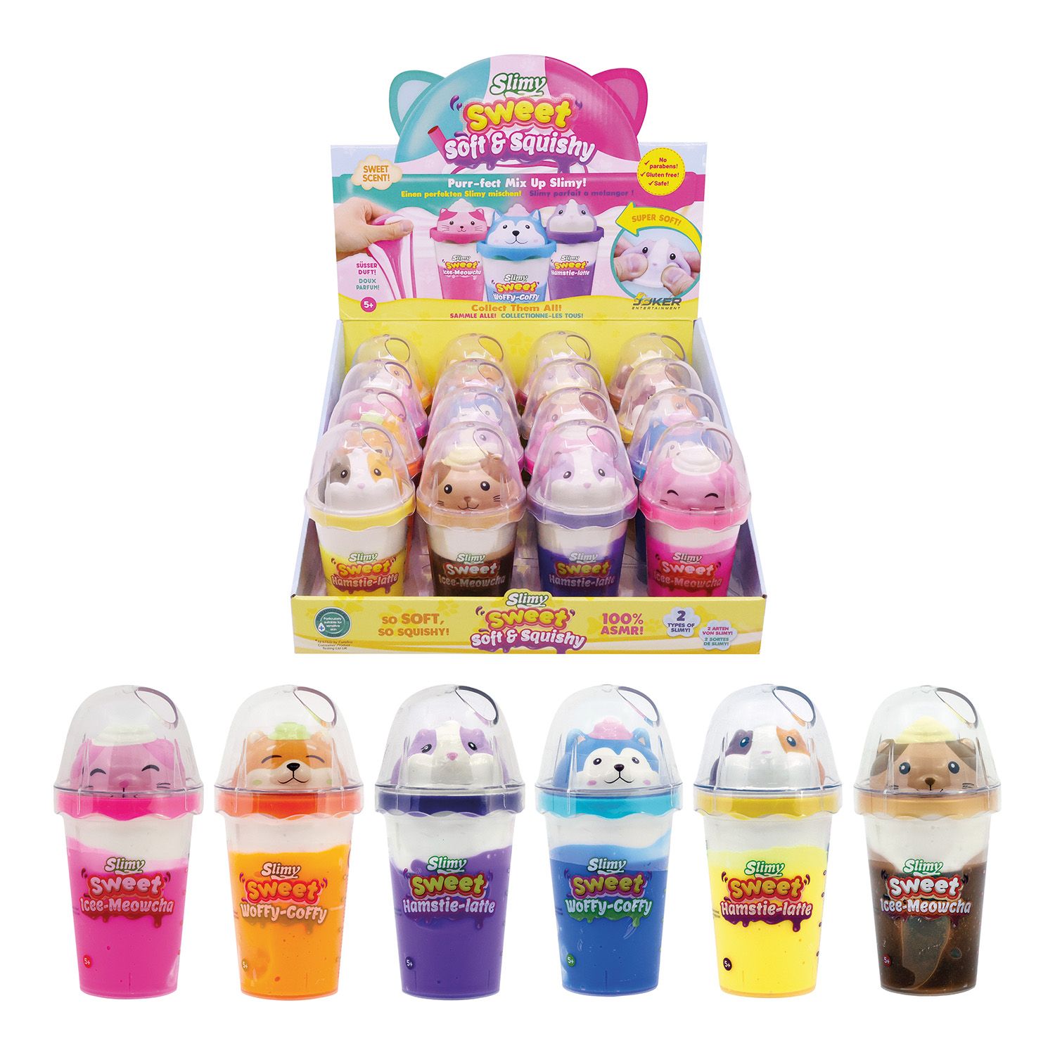 Slimy Χλαπάτσα Sweet Ανακάλυψε τον πιο γλυκό και παιχνιδιάρικο τρόπο να απολαύσεις το παιχνίδι με χλαπάτσα! Η Slimy Sweet συνδυάζει τη μαλακή, ελαστική χλαπάτσα με μια χαριτωμένη φιγούρα ζωάκι μέσα σε πολύχρωμο κύπελλο τύπου milkshake!