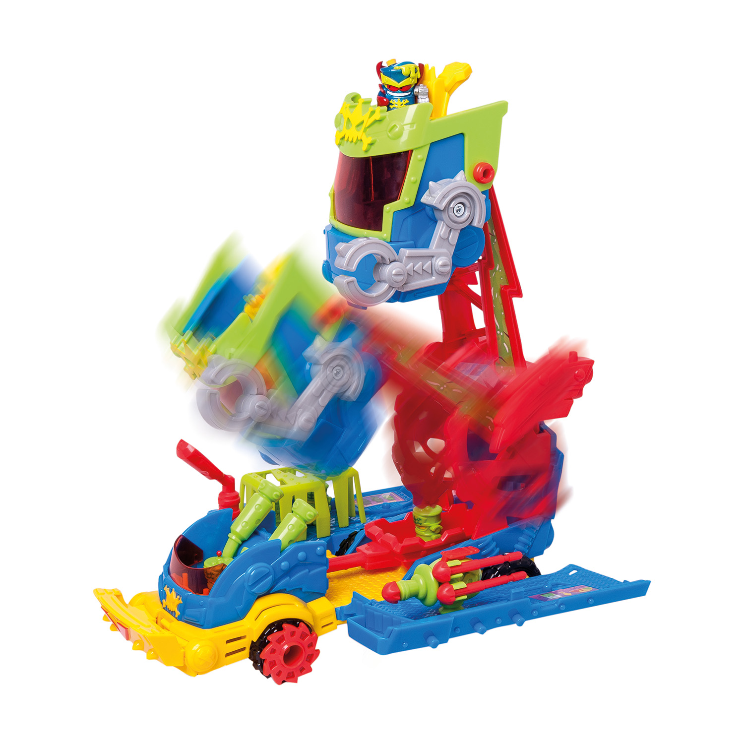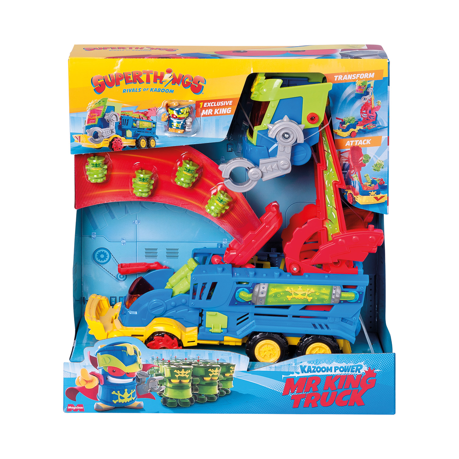Ανακαλύψτε το νέο φορτηγό του απόλυτου κακού. Το φορτηγό του Mr. King, σχεδιασμένο για μάχες, διαθέτει λειτουργία επίθεσης (attack mode), εκτοξευτήρες βλημάτων, καταπέλτη και μηχανικό βραχίονα. Παγίδευσε τους Ήρωες και κλείδωσε τους στη φυλακή που βρίσκεται μέσα στο φορτηγό. Περιέχει: – 1 Φορτηγό – 1 Φιγούρα Mr. King – 4 Φιγούρες Robotoxics – 1 Καταπέλτη – 4 Βόμβες